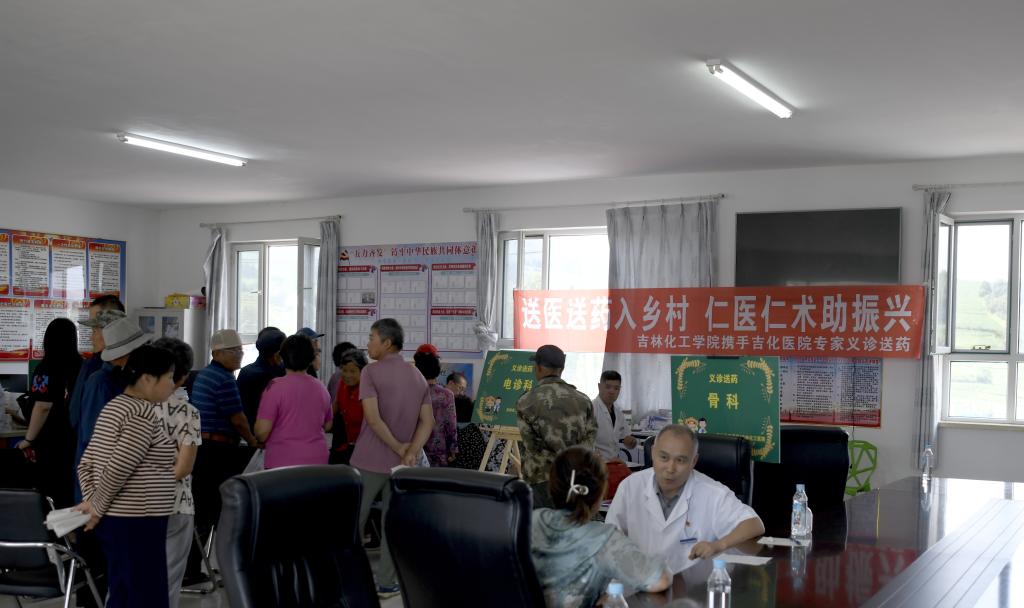 调研期间,学校邀请吉林化工医院专家入村开展义诊活动。医务专家充分运用彩超仪、听诊器、血压仪等医疗设备,为前来就诊的村民细致分析病情,现场制定治疗方案,免费发放药品并进行用药指导。