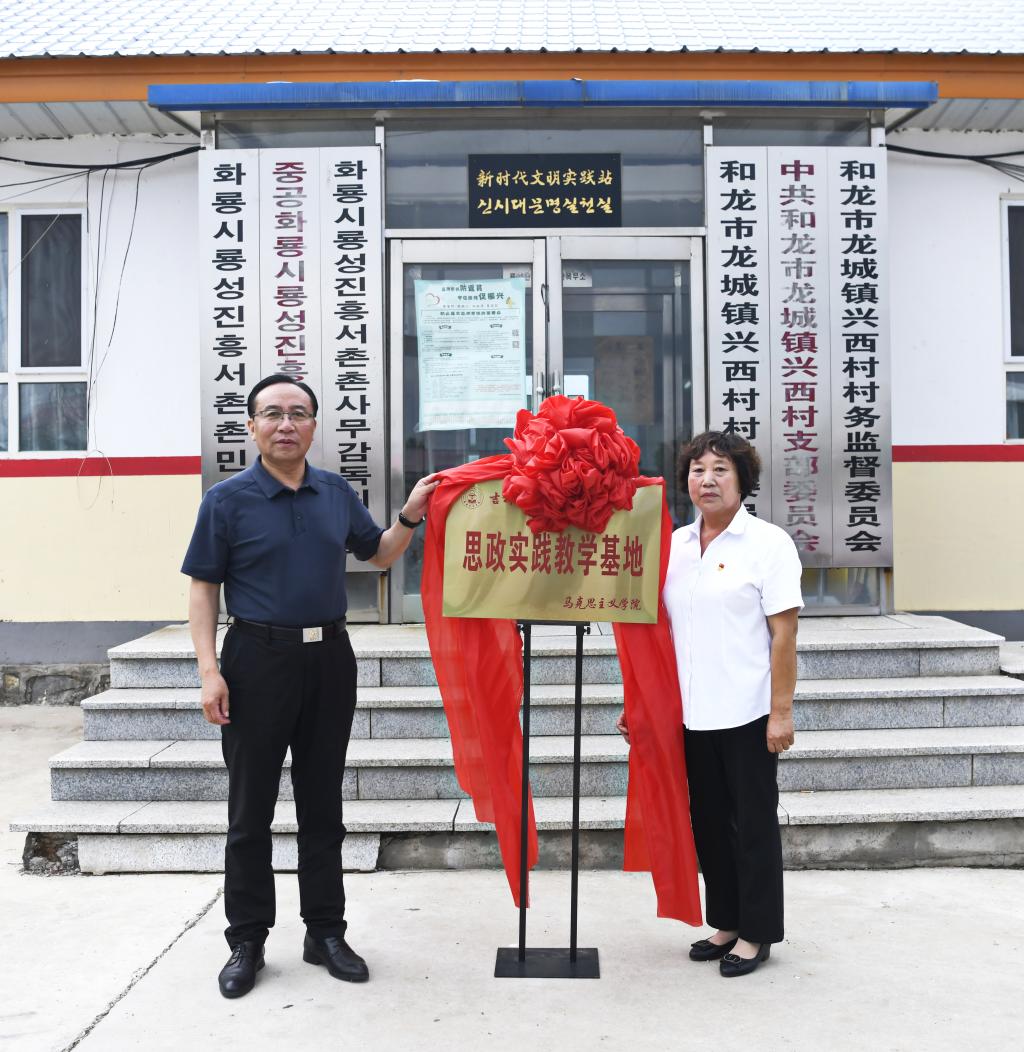 宋春辉与兴西村党支部书记金善共同为学校思政实践教学基地揭牌。双方在基地举行了“奋斗有我”大思政课实践教学活动。马克思主义学院教师为暑期“三下乡”社会实践团上了一堂别开生面的“行走的思政课”,师生围绕乡村振兴、乡村治理、民族团结等主题,通过实地考察、访谈交流、学习体验等方式,进一步增进了对乡村振兴工作的认识,激发了师生扎根吉林、服务乡村、奉献社会的热情。