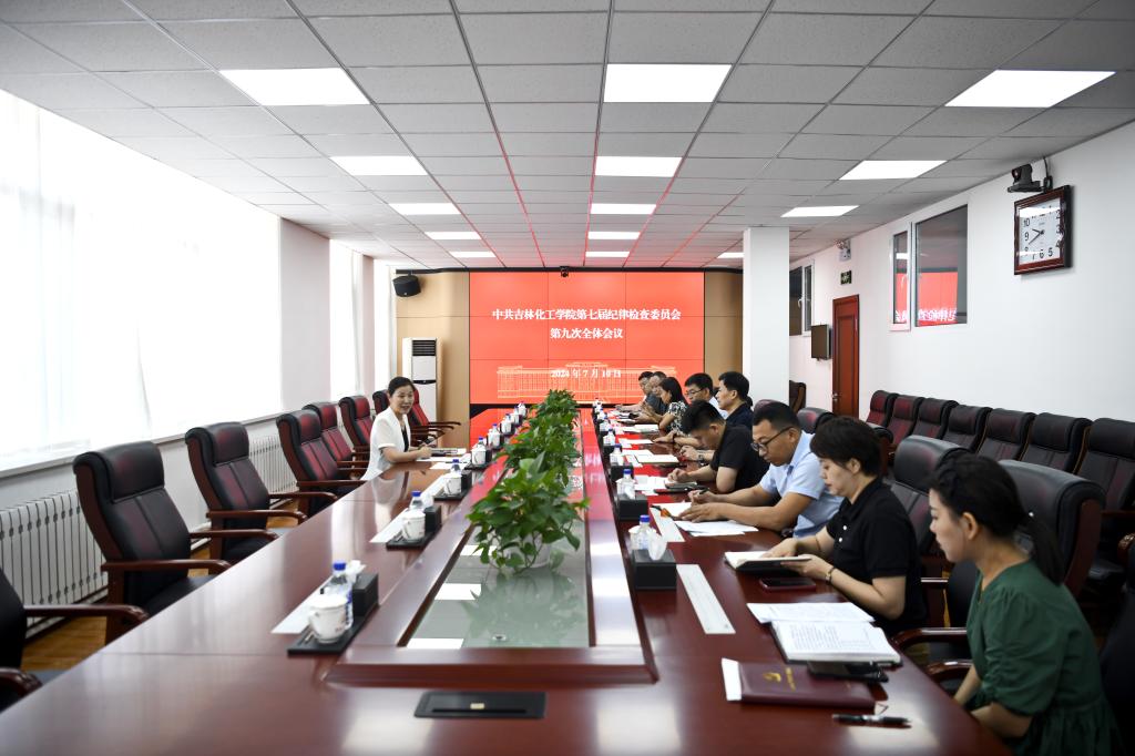 7月10日,学校纪委召开中共吉林化工学院第七届纪律检查委员会第九次全体会议。纪委书记、监察专员毕淑梅主持会议。
