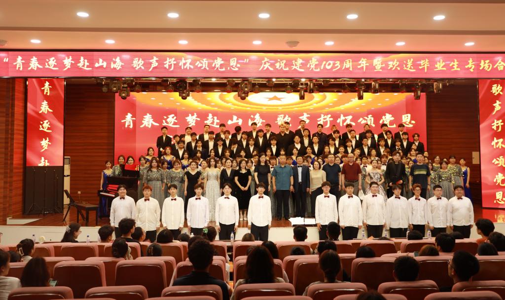 为庆祝中国共产党成立103周年,6月21日,学校团委举办“青春逐梦赴山海,歌声抒怀颂党恩”庆祝建党103周年暨欢送毕业生专场合唱音乐会。学校党委副书记李士阳出席活动。