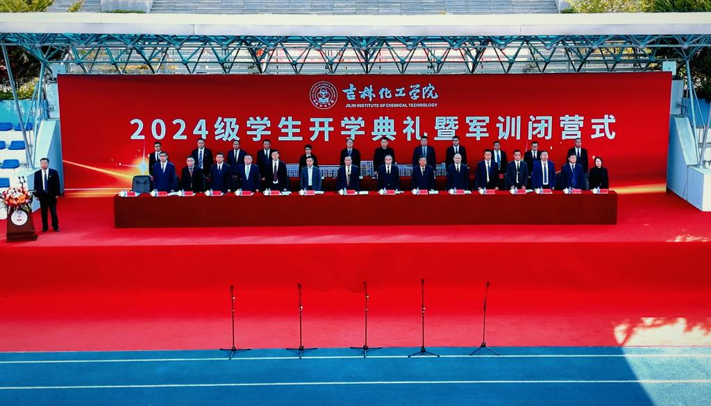 党委副书记蔡立峰宣读《关于表彰2024级学生军训先进集体和先进个人的决定》;党委副书记李士阳向承训部队——中国人民解放军31692部队赠送锦旗;党委常委、副校长孙大志宣读《关于组建吉林化工学院大学生预备连的通知》。